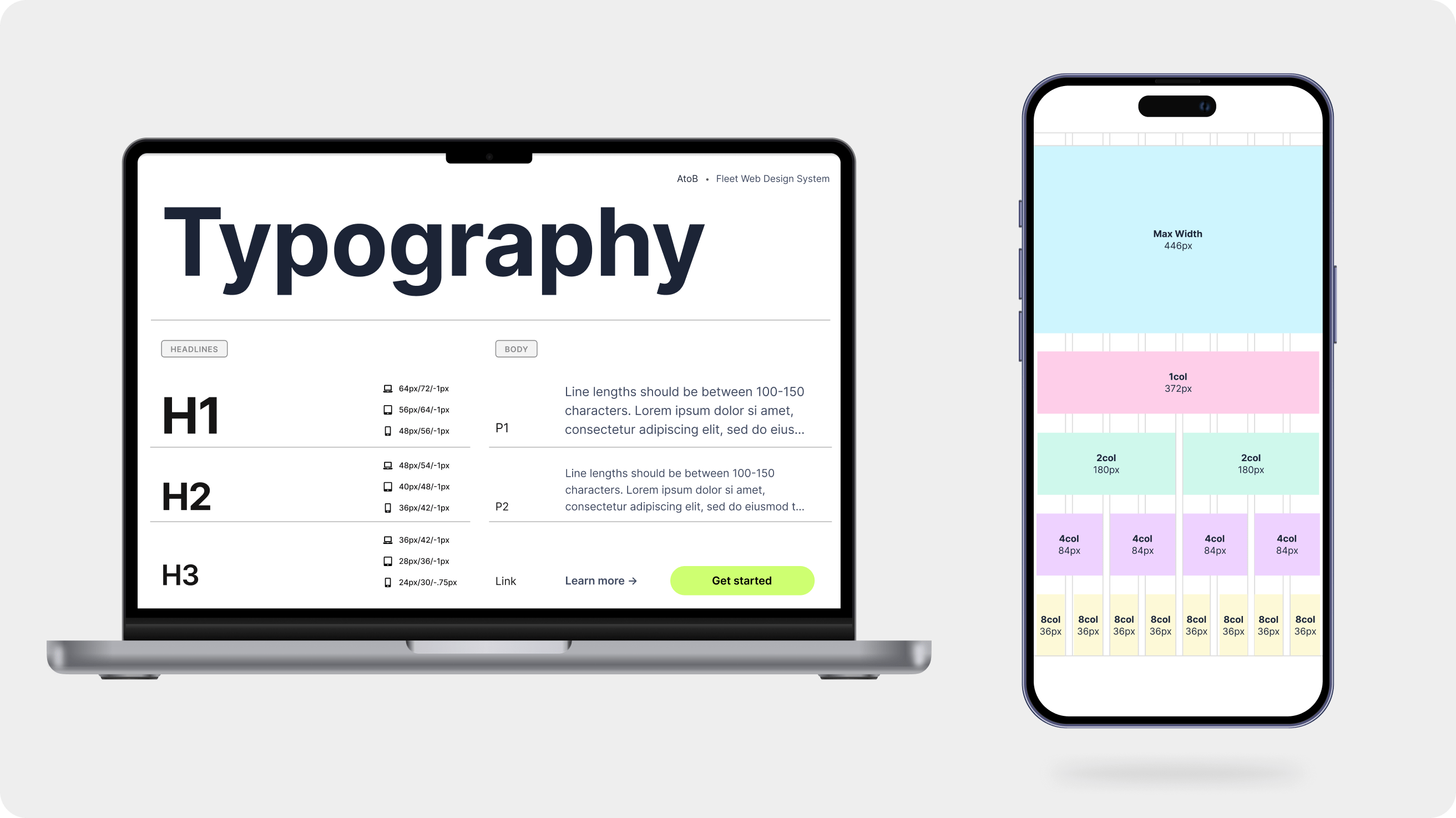 Being the solo in-house brand designer at AtoB allowed me to make incremental upgrades to the brand alongside keep-the-lights-on projects. After nearly a year I looked back and had a new set of brand guidelines, landing pages, and a full-fledged design system to be used across multiple channels including web, email marketing, printed collateral and more.